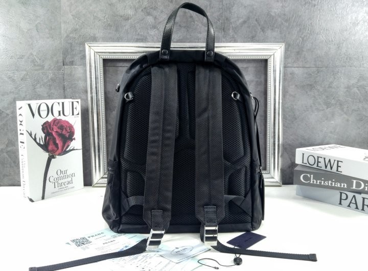 현대적이고 미니멀한 라인의 백팩으로, 사피아노 가죽 트리밍이 인상적입니다.