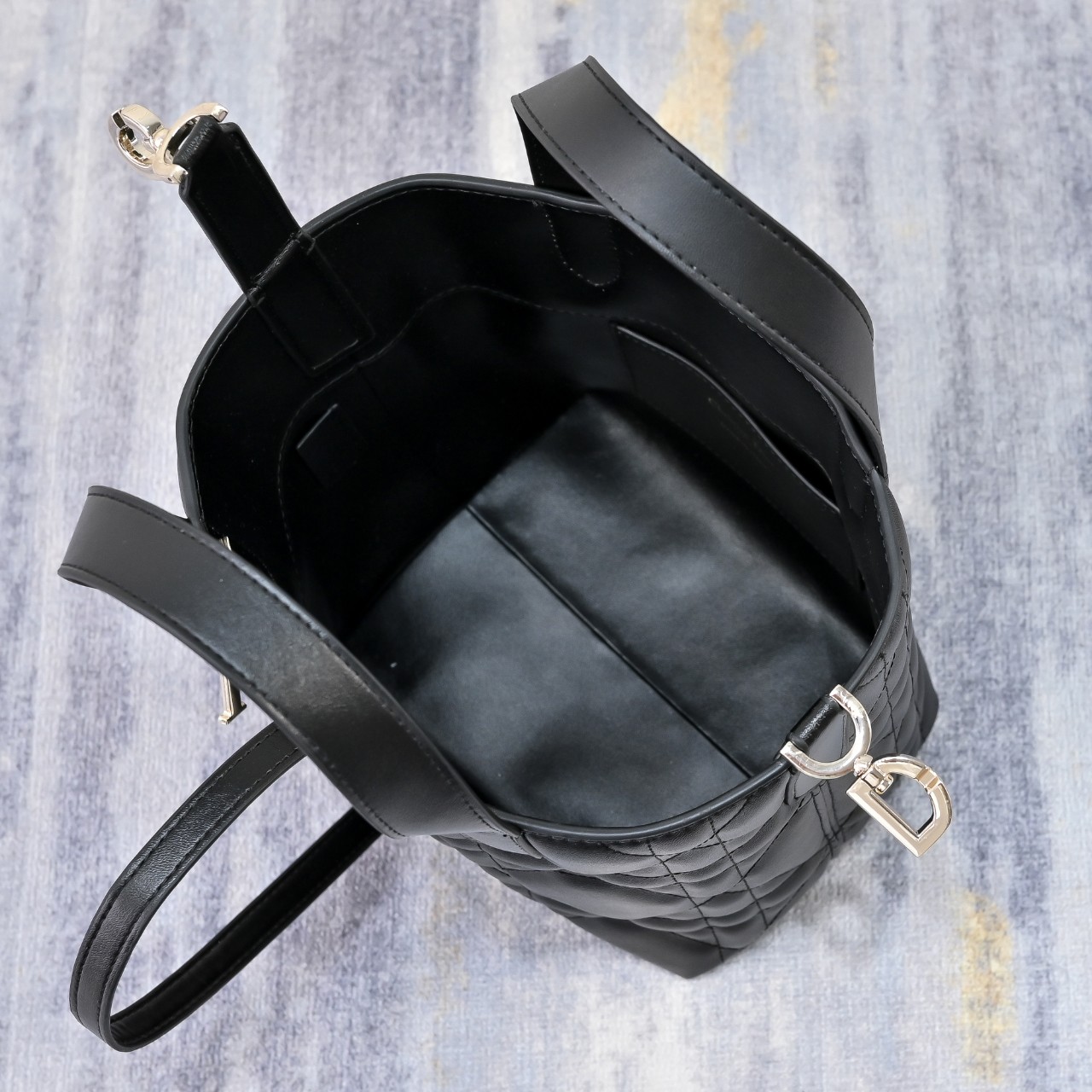 모던하고 실용적인 디자인의 Dior Toujours 버티컬 토트백입니다. 매크로까나쥬 스티칭 디테일의 블랙 송아지 가죽 소재로 제작되었으며, 넉넉한 내부 수납공간에 모든 데일리 소지품을 보관할 수 있습니다. 슬림한 가죽 스트랩 클로저로 소지품을 안전하게 보관할 수 있으며, CD Lock 잠금장치의 D를 돌려 실루엣 옆면을 조절할 수 있습니다. 가죽 탑 핸들 및 탈착식 가죽 스트랩을 갖춘 스몰 백으로 핸드백, 숄더백, 크로스백으로 연출하기 좋습니다.