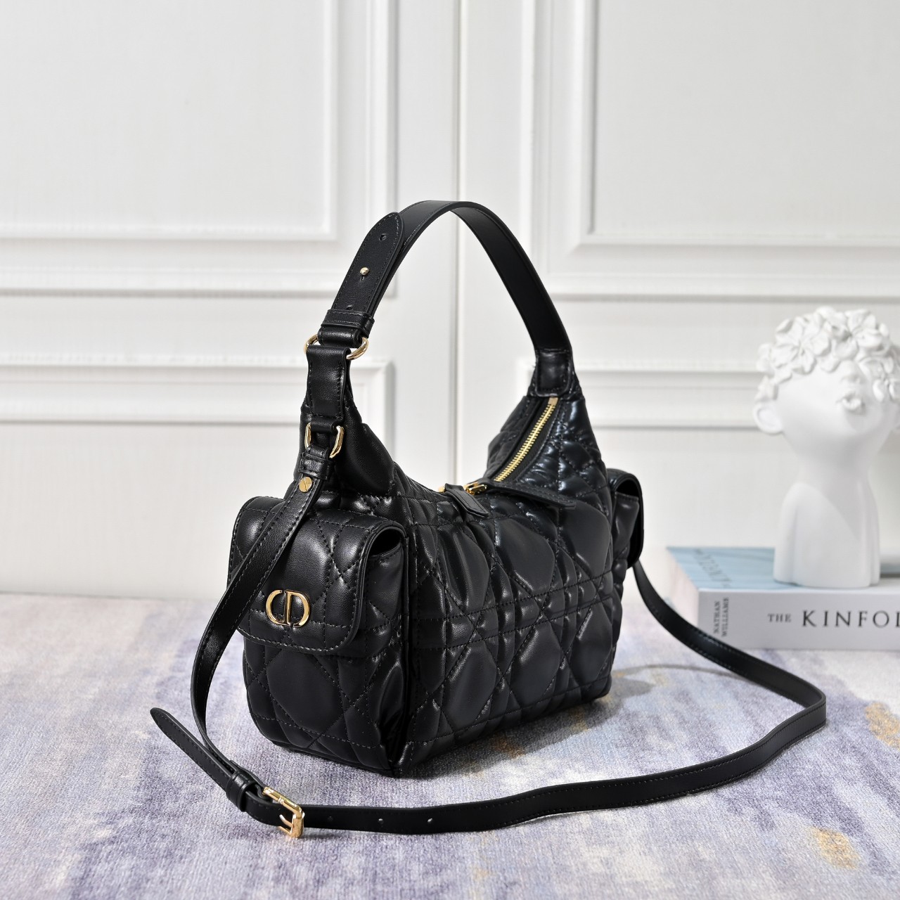 2025 겨울 시즌에 새롭게 선보이는 실용적이고 캐주얼하며 모던한 디자인의 D-Dream 백입니다. 매크로까나쥬 스티칭으로 장식한 블랙 양가죽 소재로 제작되었으며 부드러운 실루엣이 특징입니다. 넉넉한 지퍼 수납공간과 양 옆면의 포켓 2개에 데일리 소지품을 모두 보관할 수 있으며, 포켓은 골드 피니시 메탈 CD 시그니처 장식의 자석 플랩이 돋보입니다. 길이 조절 가능한 탑 핸들 및 길이 조절 가능한 탈착식 가죽 스트랩으로 구성된 미디엄 백으로, 데일리 숄더백이나 크로스백으로 활용하기 좋습니다.