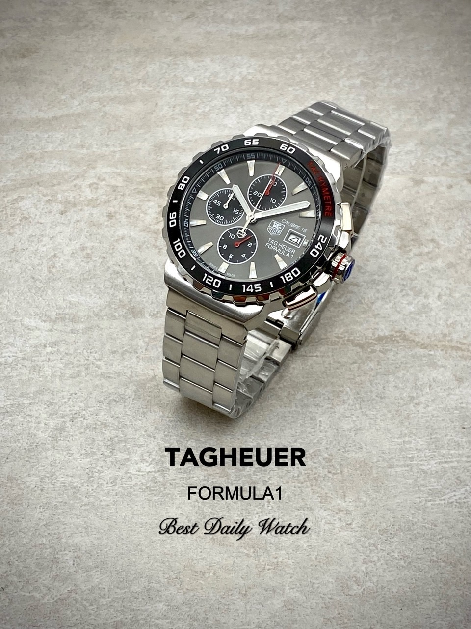 크로노그래프 블랙 카운터와 다크그레이 다이얼로 완벽한 조화를 이룹니다