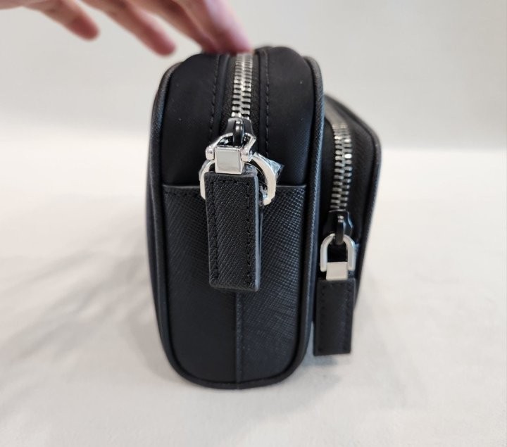 프라다의 두 가지 아이코닉한 소재의 조합이 특징인 하이브리드 디자인의 기능적이고 스포티한 백입니다. 혁신적인 리나일론의 실용적인 감각과 사피아노 가죽 특유의 빗살무늬 마감이 컴팩트한 백을 더욱 돋보이게 합니다. 탈부착형 파우치가 달린 숄더 스트랩이 상징적인 에나멜 메탈 트라이앵글 로고로 장식된 백을 완성합니다.