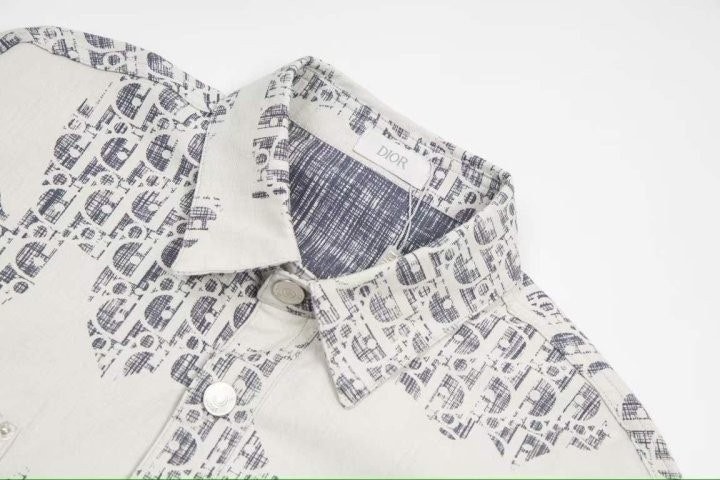 홀마크 Dior Oblique 모티브를 전통적인 일본의 직조 기법에서 영감을 받은 버전으로 풀어낸 셔츠입니다. 그레이와 화이트 컬러 코튼 데님 소재로 제작되었으며, 올오버 블리치-이펙트와 셀비지 디테일이 특징입니다. 진과 세트로 매치해 토털 룩으로 연출하기 좋습니다.