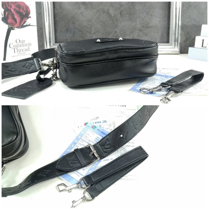 신비롭고 우아한 광택이 도는 블랙 색상의 카프스킨 소재로 선보이는 닐 시티 백. 실버 색상의 옆면 잠금장치가 특징. 지퍼 풀러에 LV 이니셜 참이 연결된 지퍼형 메인 수납공간. 두 개의 진주 리벳으로 고정한 앞면의 '파리' 패치.