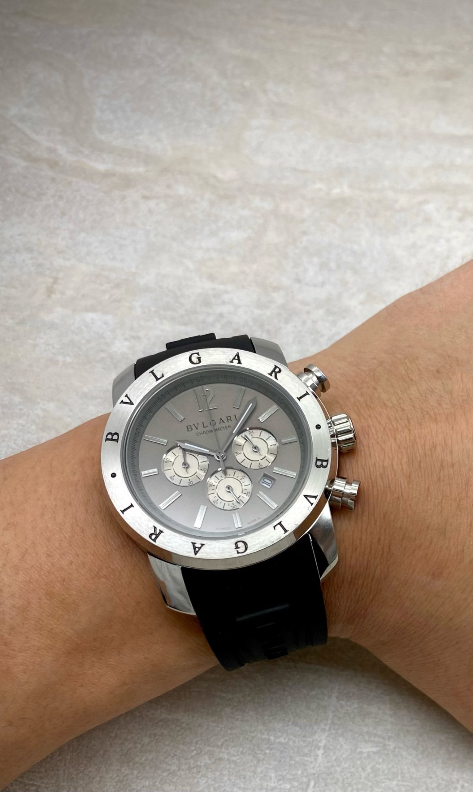 45mm의 빅사이즈 다이얼과 블랙 화이트 조화가