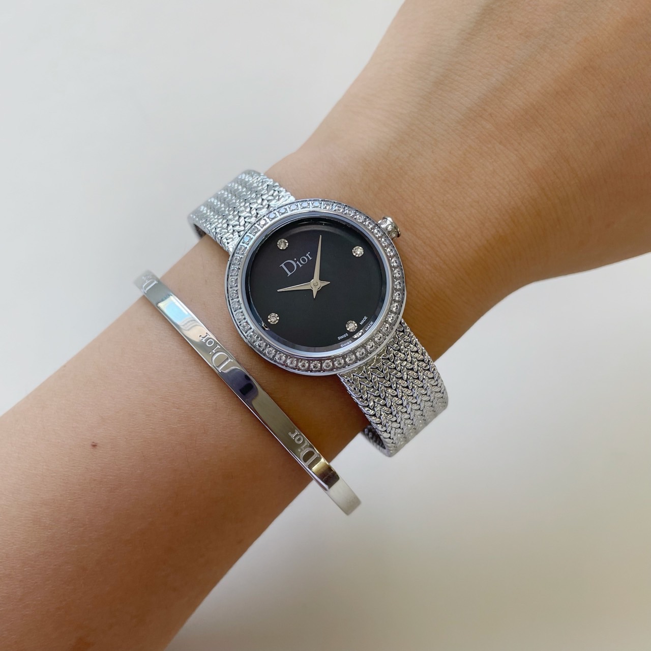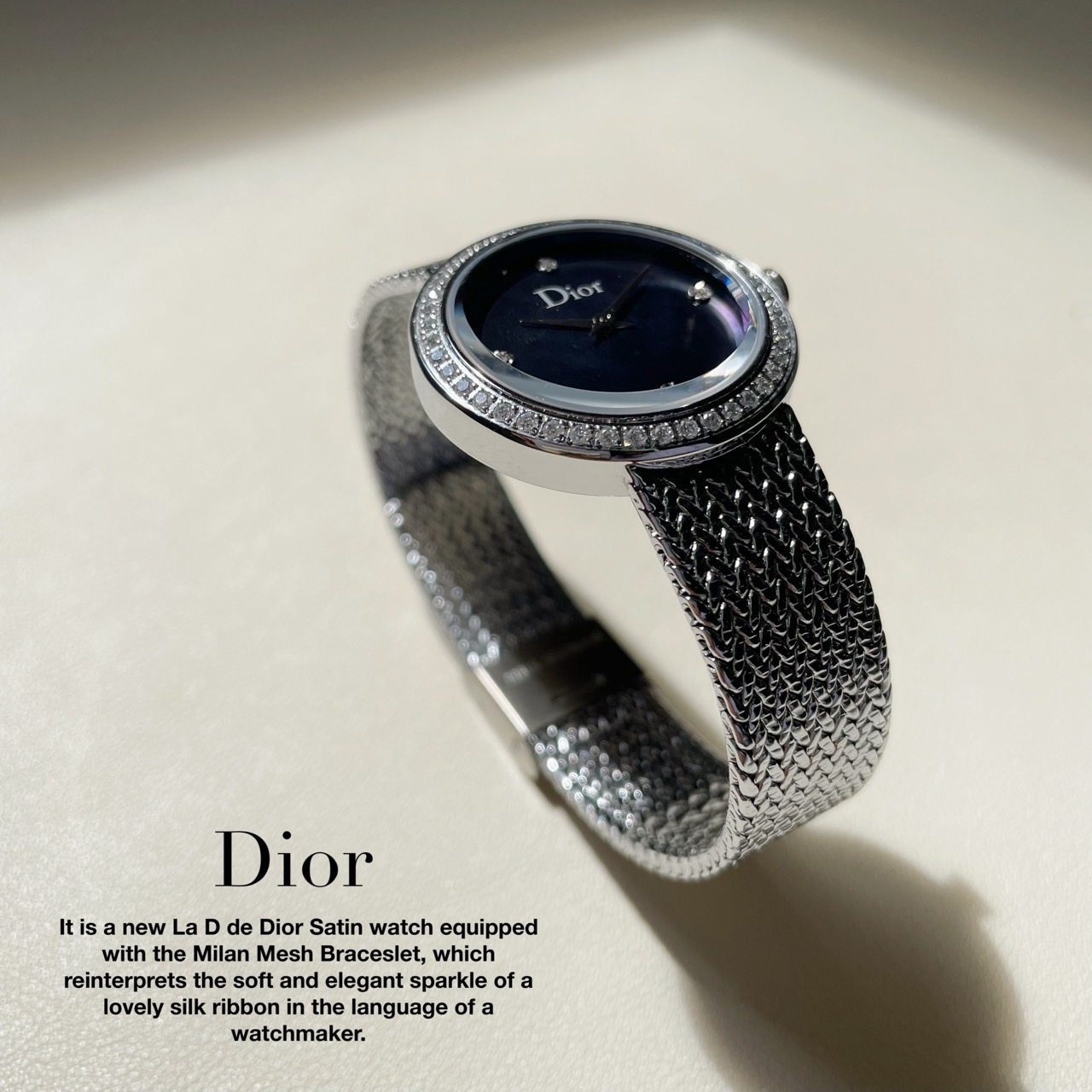 진귀한 세련미. La D de Dior 컬렉션은 디올의 주얼리 정신과 창조적인 대담성, 소재와 컬러의 조합 그리고 모든 스위스 시계 노하우를 구현합니다.