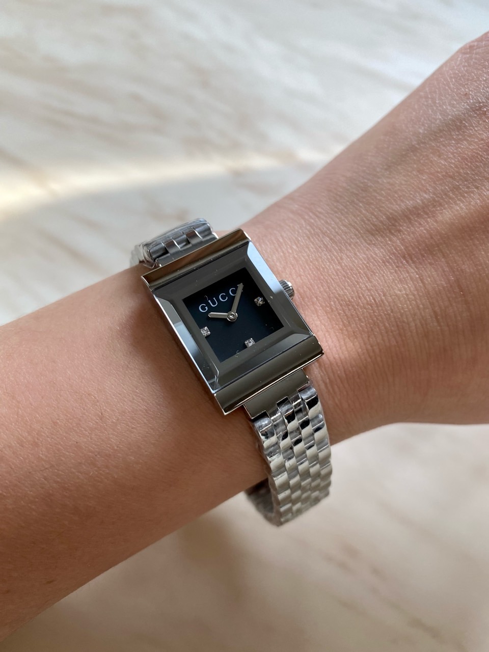 정사각형의 작지만 세련된 디자인으로 구찌 워치중