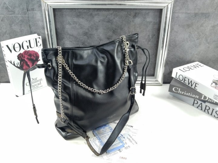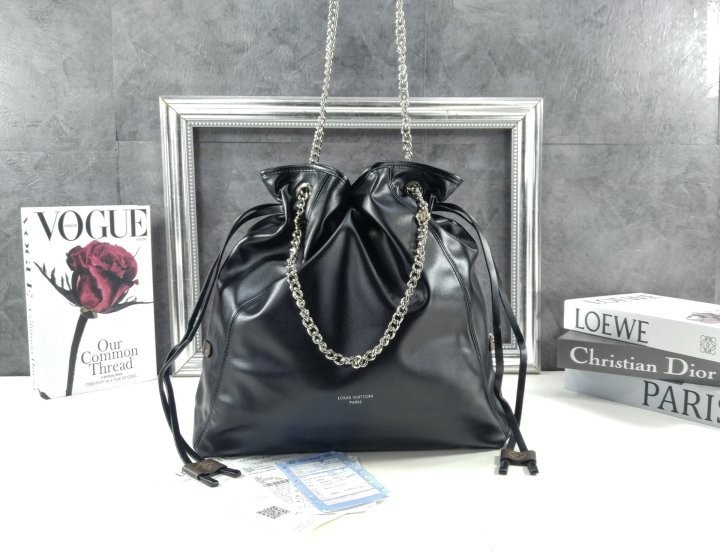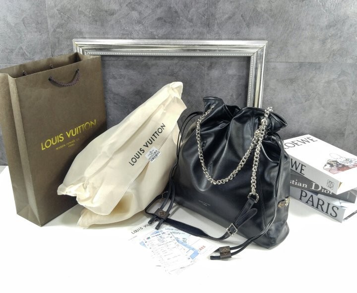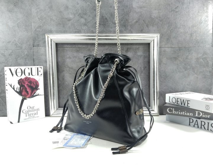 LV 바이브 컬렉션에서 선보이는 오프 듀티 MM(Off Duty MM). 기능적이면서도 어떠한 룩에나 은은한 로큰롤 감성을 더해줄 아이템. 양가죽 소재. 실버 색상의 하드웨어. 한쪽 옆면의 시그니처 LV 서클 디테일.