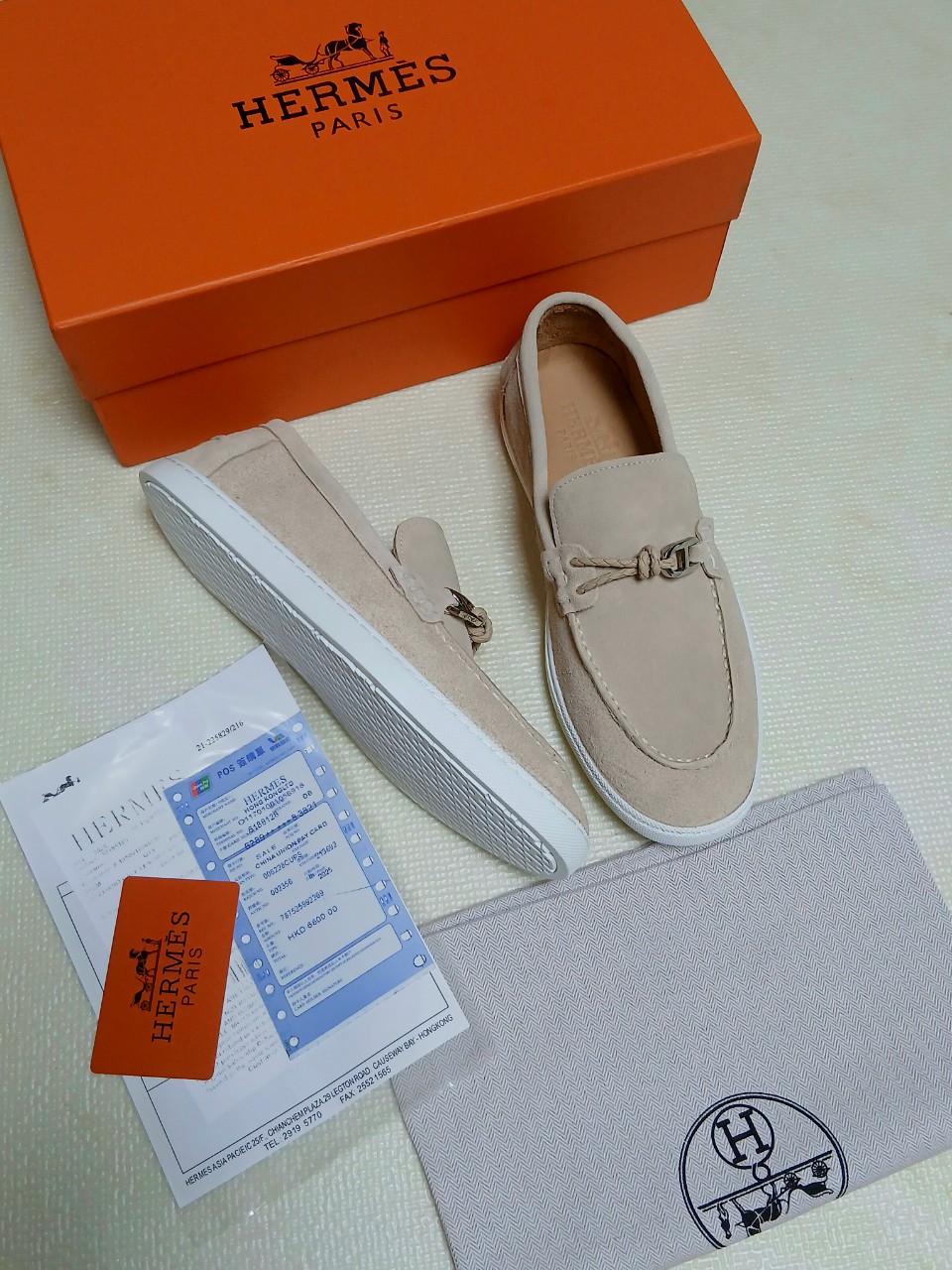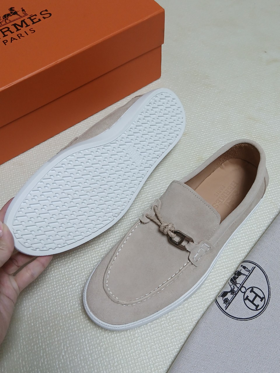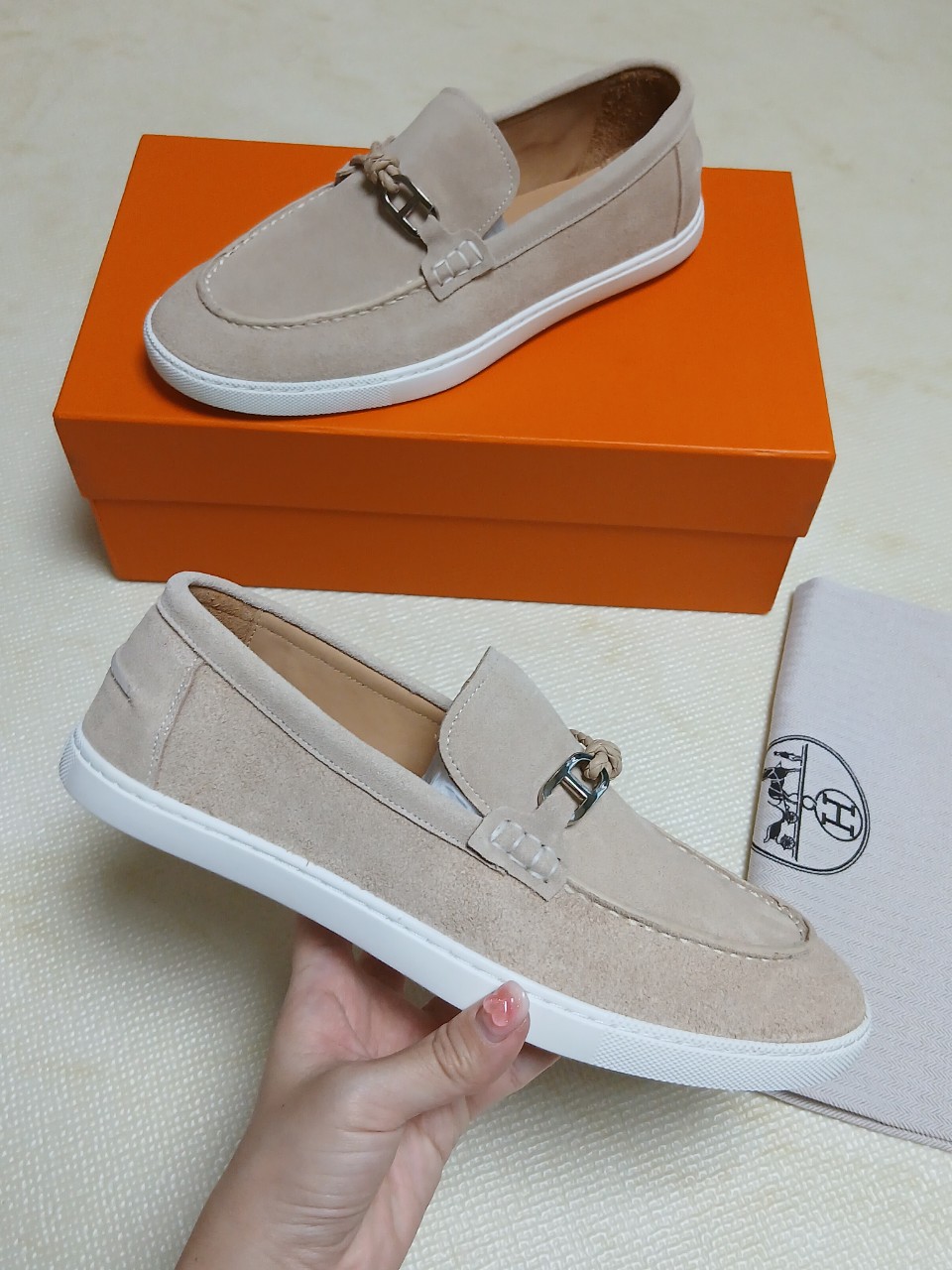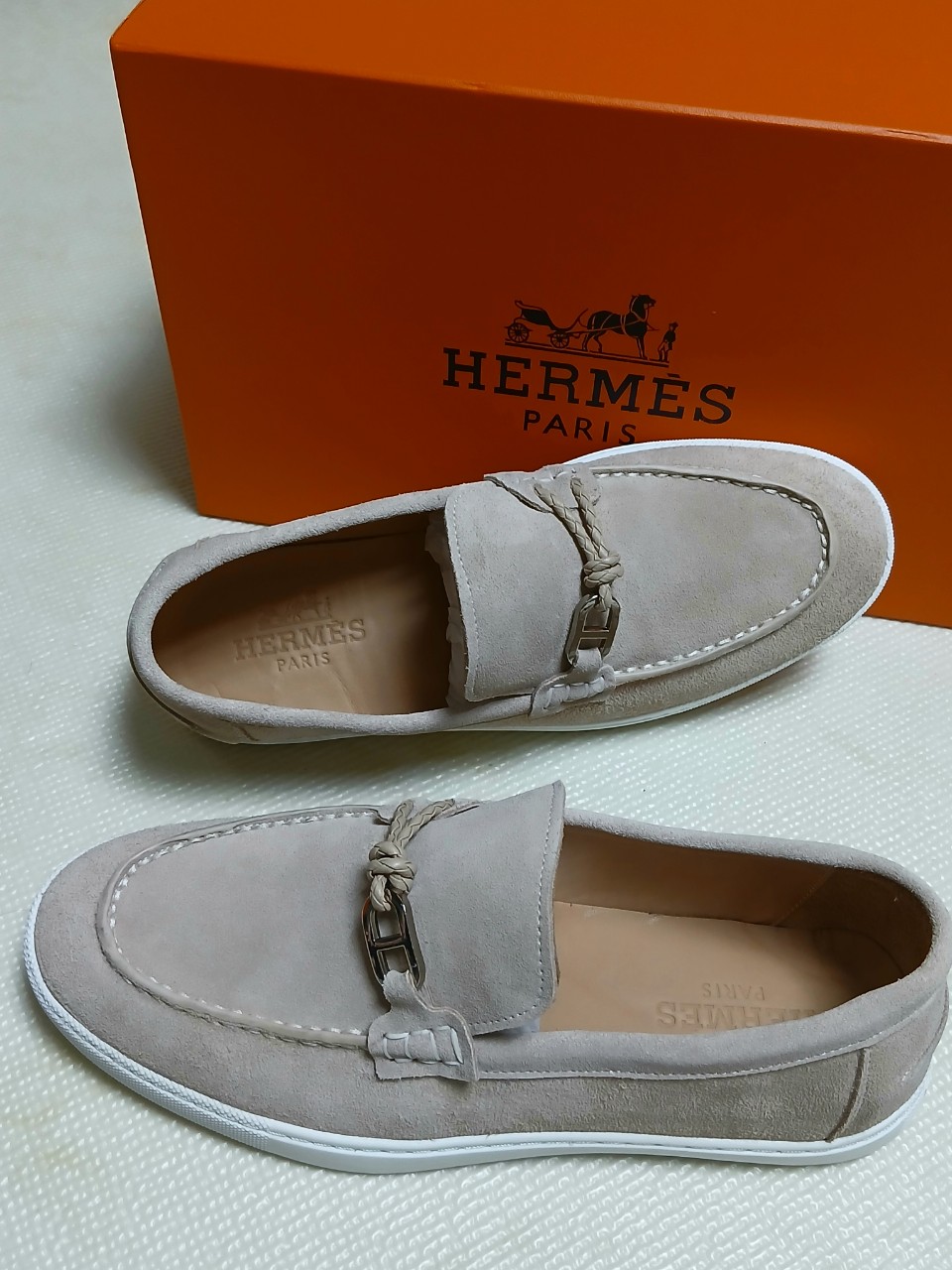 ☆브레이디드 가죽 코드와 Chaine dAncre 버클이 특징인 스웨이드 카프스킨 소재의 드라이빙 로퍼.