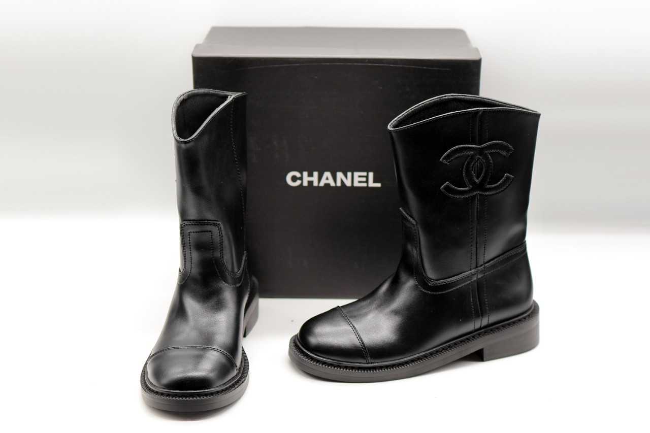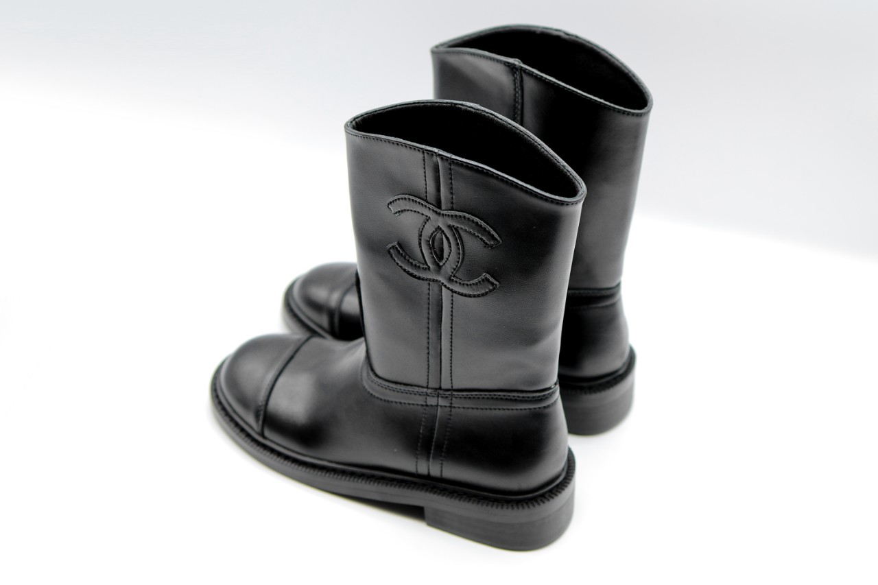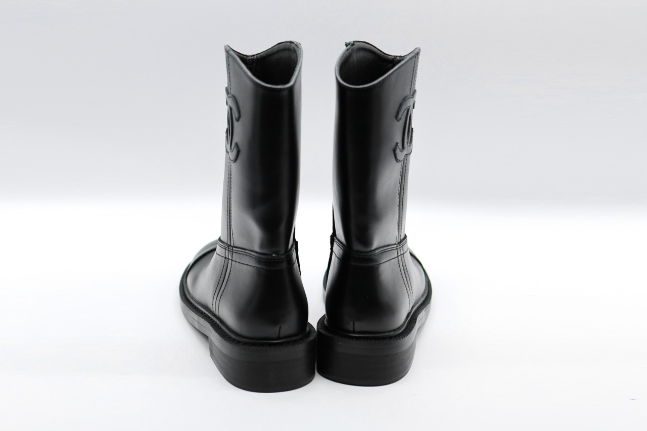 샤넬 25FW 레더 앵클 미들 숏 부츠 CC로고 블랙